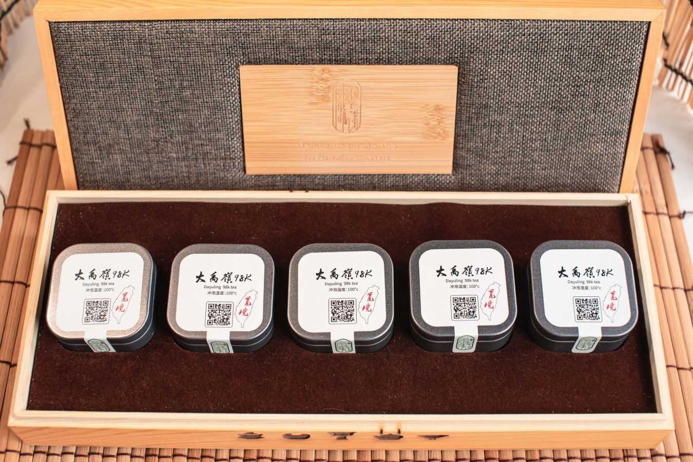 內容物:五小罐大禹嶺茶葉,每罐 12 公克。